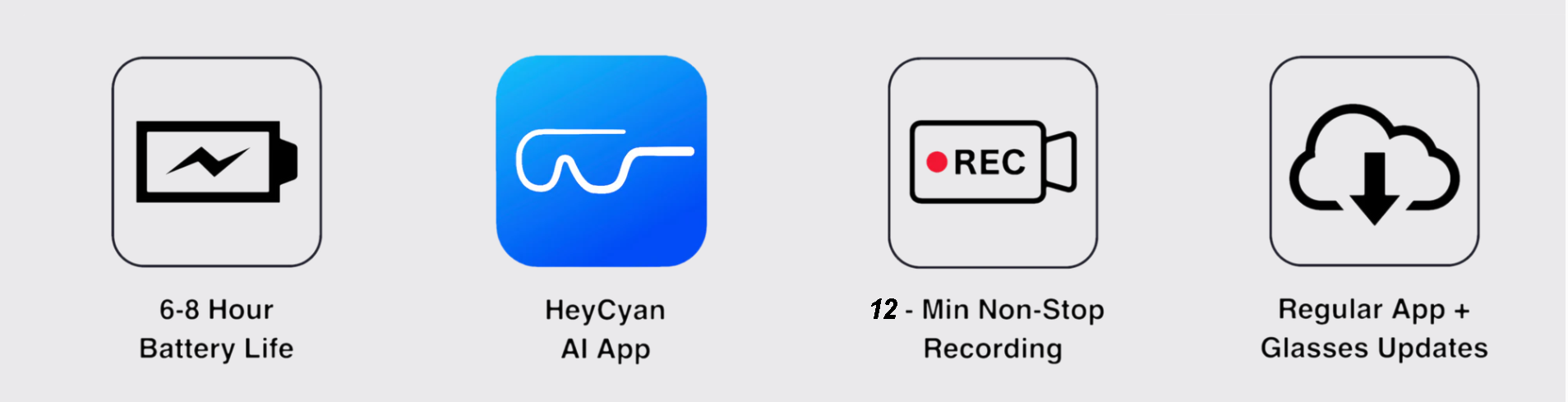 Activate "Hey Cyan" for creative ideas, daily organization, and instant learning. Translate text, explore surroundings, find recipes, scan codes, and record thoughts — all through natural voice commands integrated into your smart glasses.